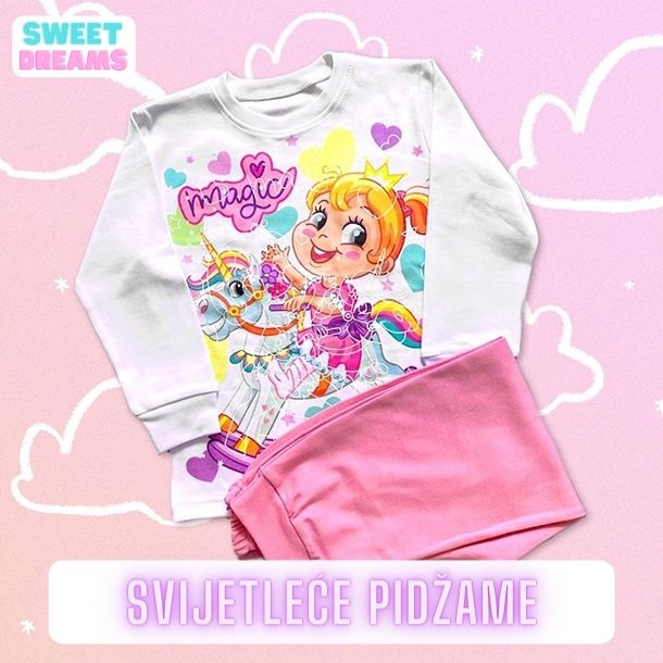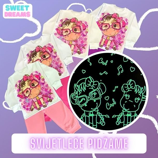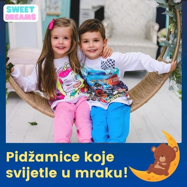 Djeci će vrijeme kad se kreće u krevet postati zabavno i neće više biti nervoze pri odlasku u krevet. Svijetleće pidžame podjednako vole i manja i veća djeca. Veličine su dostupne za djecu od 2 do 14 godina.