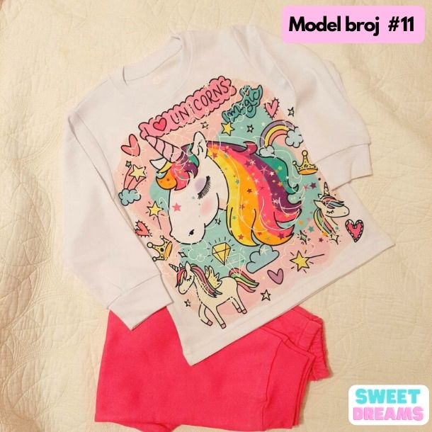 Kvalitetni štampani ukrasi po cijeloj pidžami! U ponudi imamo MNOGO RAZLIČITIH modela! Izaberite jedan od omiljenih motiva i boju za vašeg mališana i obradujte ga. 🦄😻 👧🎄🐴 Naš komplet čini gornji i donji dio dugih rukava, a pamuk je srednje debljine, tako da se pidžama može nositi skoro tokom čitave godine.